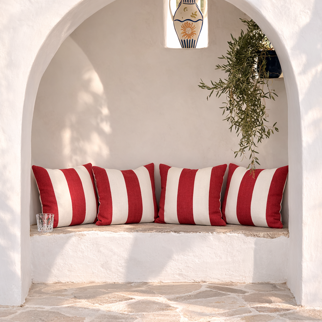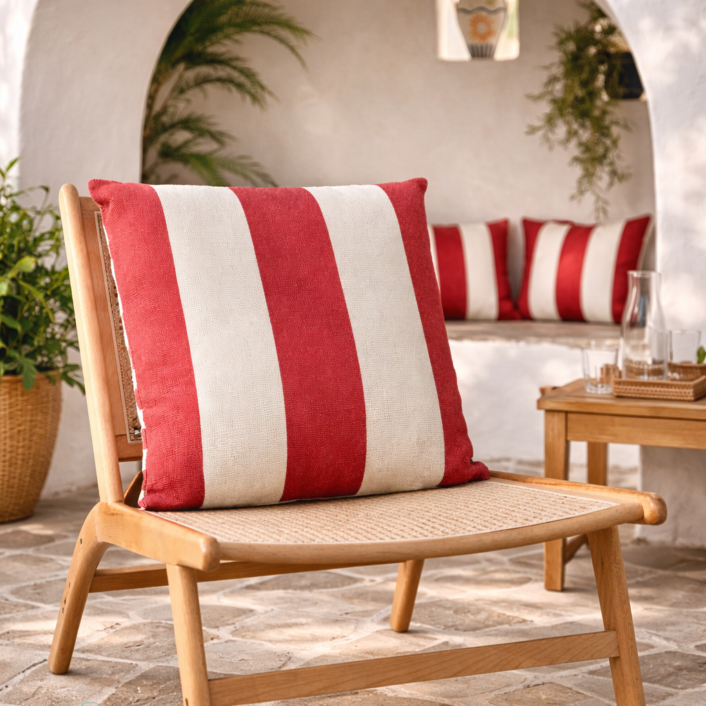 Our cushion use classic stripes bringing a relaxed, resort-style charm to outdoor seating. Designed for garden chairs, sun-drenched terraces, and slow summer afternoons, the water-resistant fabric helps it stay looking fresh through the changing seasons.