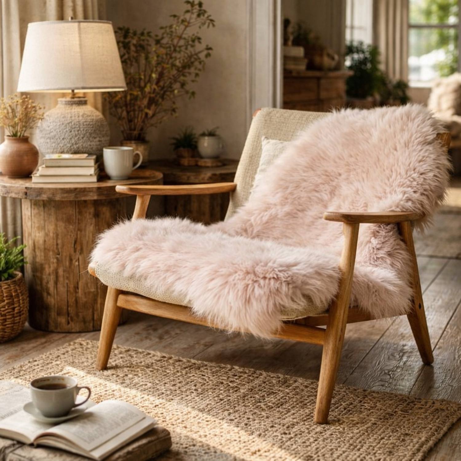 A quiet morning, bare feet on wood floors, and the softest landing imaginable. This off-white sheepskin rug brings instant warmth to any room, whether it’s layered beside the bed, nestled near the fireplace, or casually draped over a favorite bench or sofa.