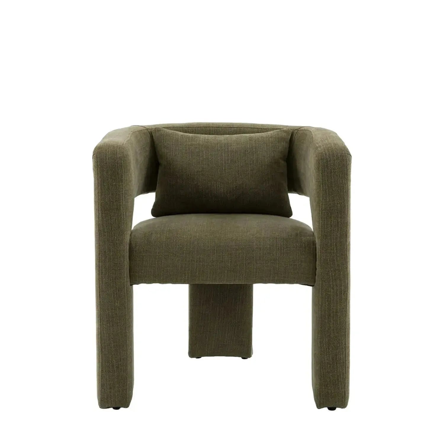 A coordinating bolster cushion adds an extra layer of comfort, balancing structure with softness for a seat that feels as good as it looks. Distinctive yet versatile, this chair is a piece to be noticed—perfect for interiors that favour character, texture, and considered design.