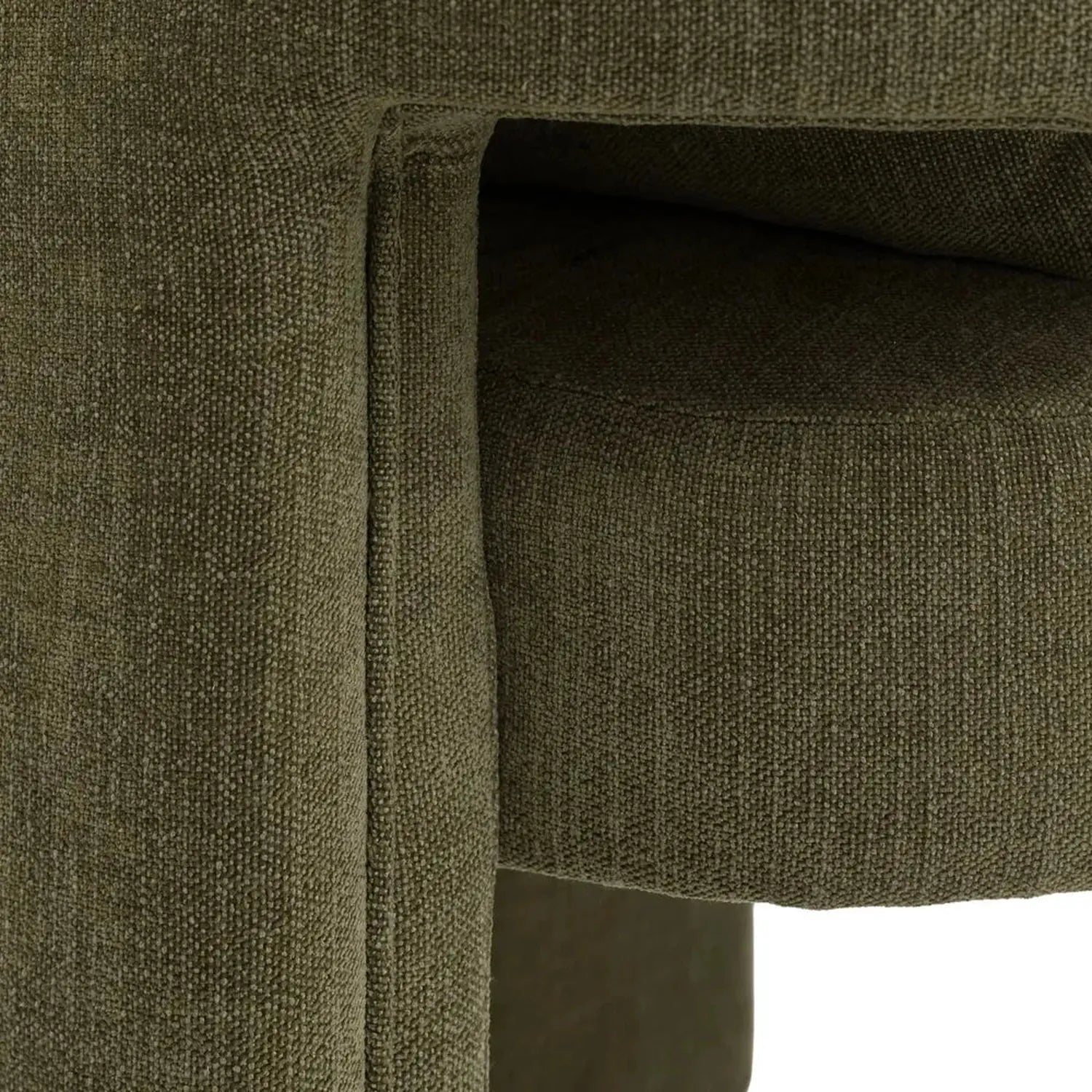 Designed to make a statement while inviting you to linger, this occasional chair pairs bold, sculptural lines with a soft, enveloping form. Fully upholstered in a rich green fabric, its confident silhouette brings a sense of modern artistry to the room—effortlessly anchoring a corner, bedroom, or reading nook.