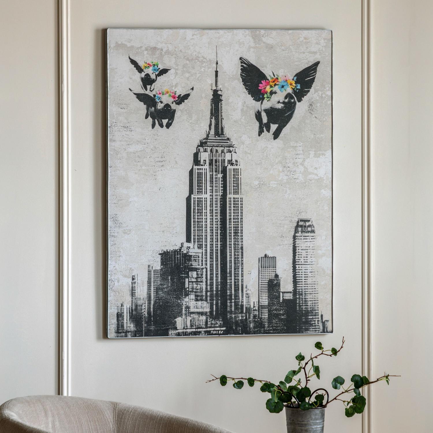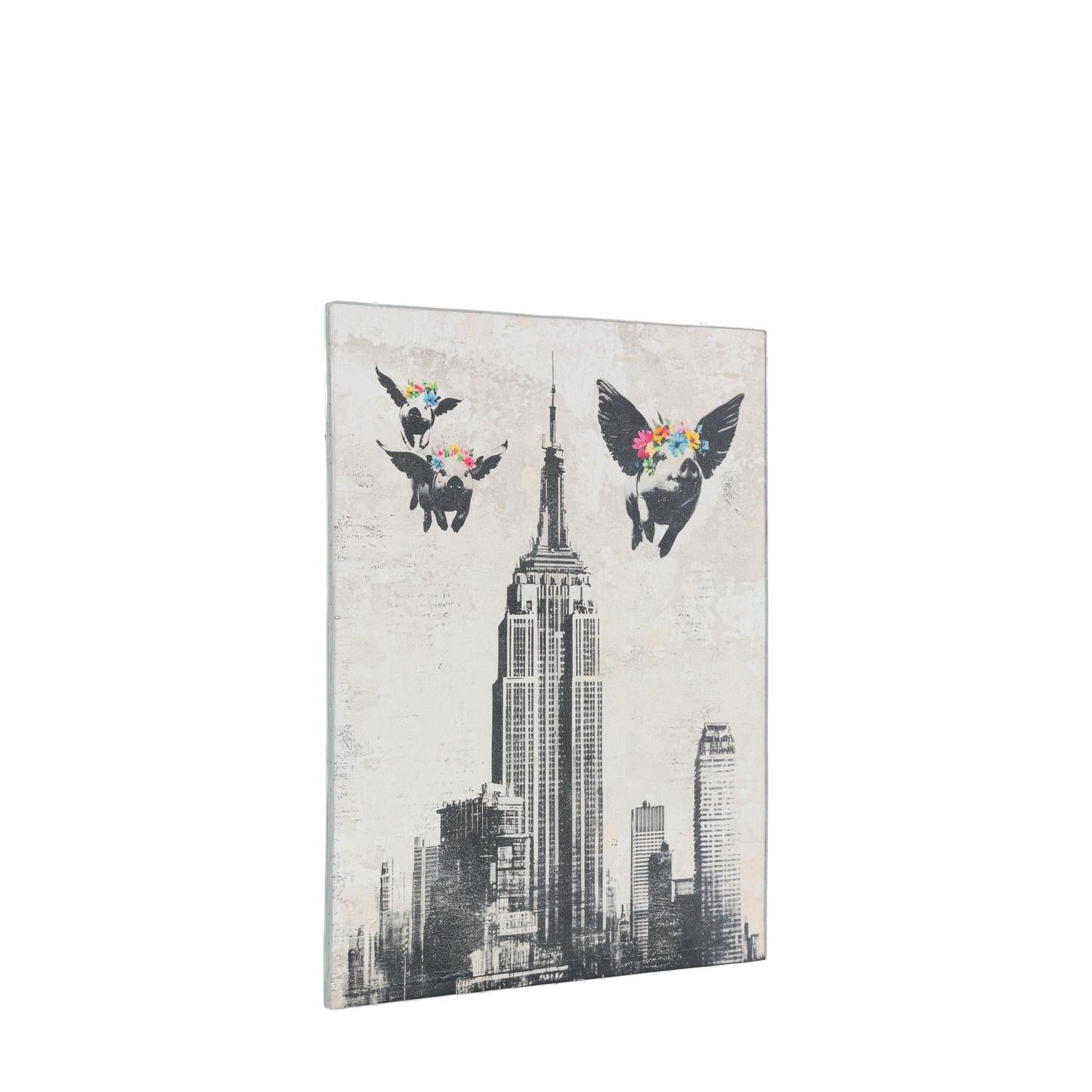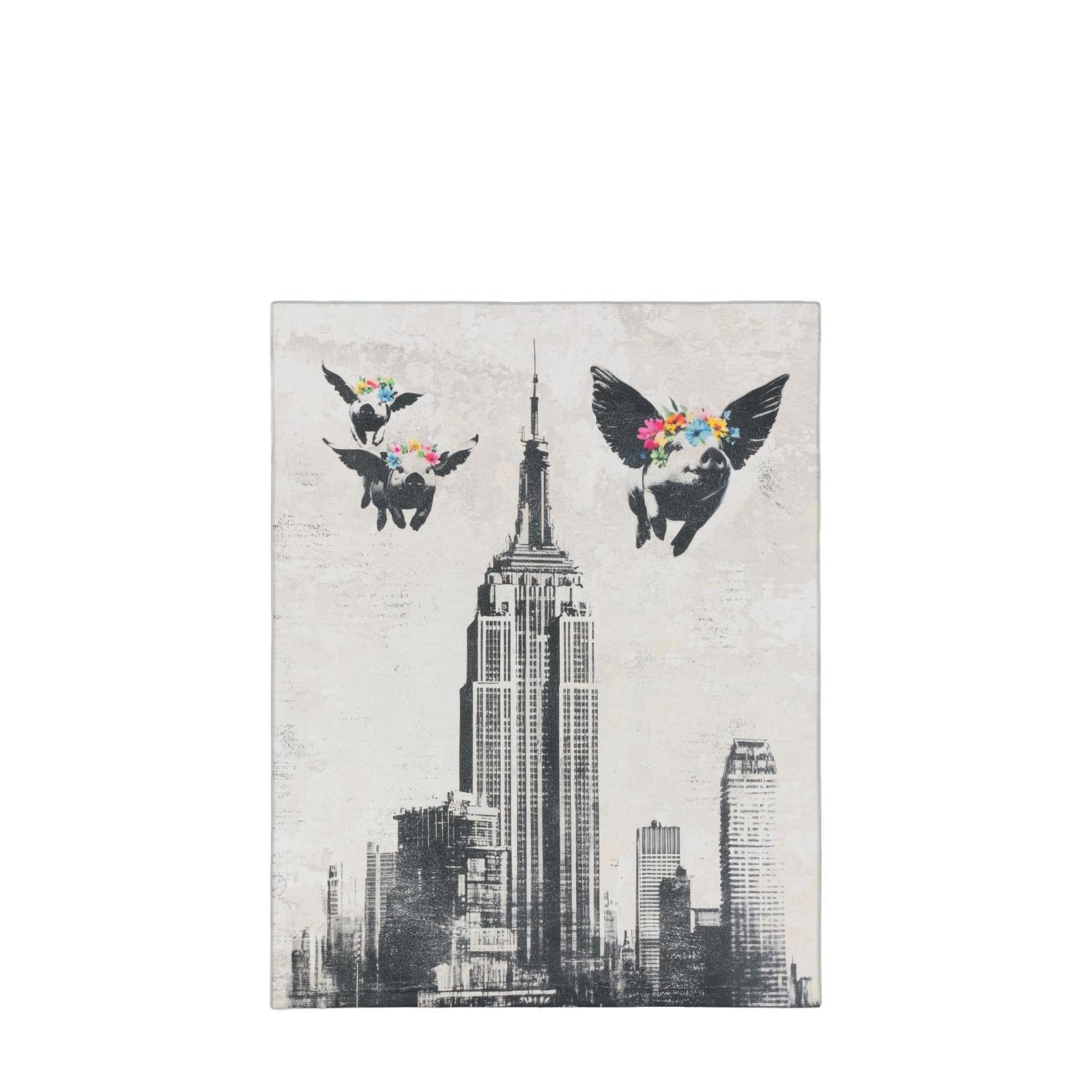 This quirky artwork reimagines an enduring symbol of freedom through colour and renewal. The monochrome Statue of Liberty bursts with vivid florals in place of flame, blending strength and grace. Encased in a rustic industrial metal frame, the artwork pairs urban grit with poetic vibrancy, a striking reflection of hope and transformation.