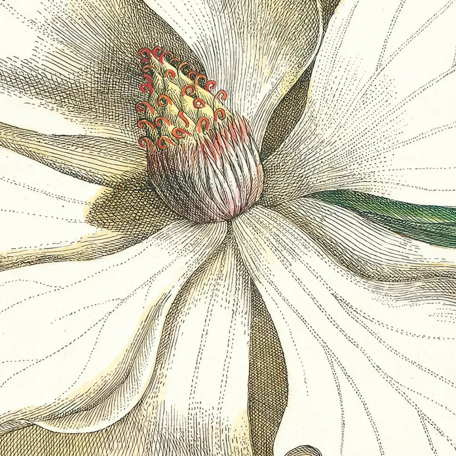 Mark Catesby (1683-1749) was an English naturalist, artist, and explorer known for his significant contributions to early American natural history. He is best remembered for his monumental work in the publication -The Natural History of Carolina, Florida, and the Bahama Islands. The botanical illustration of the Magnolia tree (The Laurel Tree of Carolina) in Volume 2 is a masterpiece that captures the tree's beauty in all its glory. Against an ebony background, the stunning stem showcases the large aromatic flower and the exotic pink fruit, creating a visual treat for the eyes. A slimline mottled gold frame presents the beautiful canva