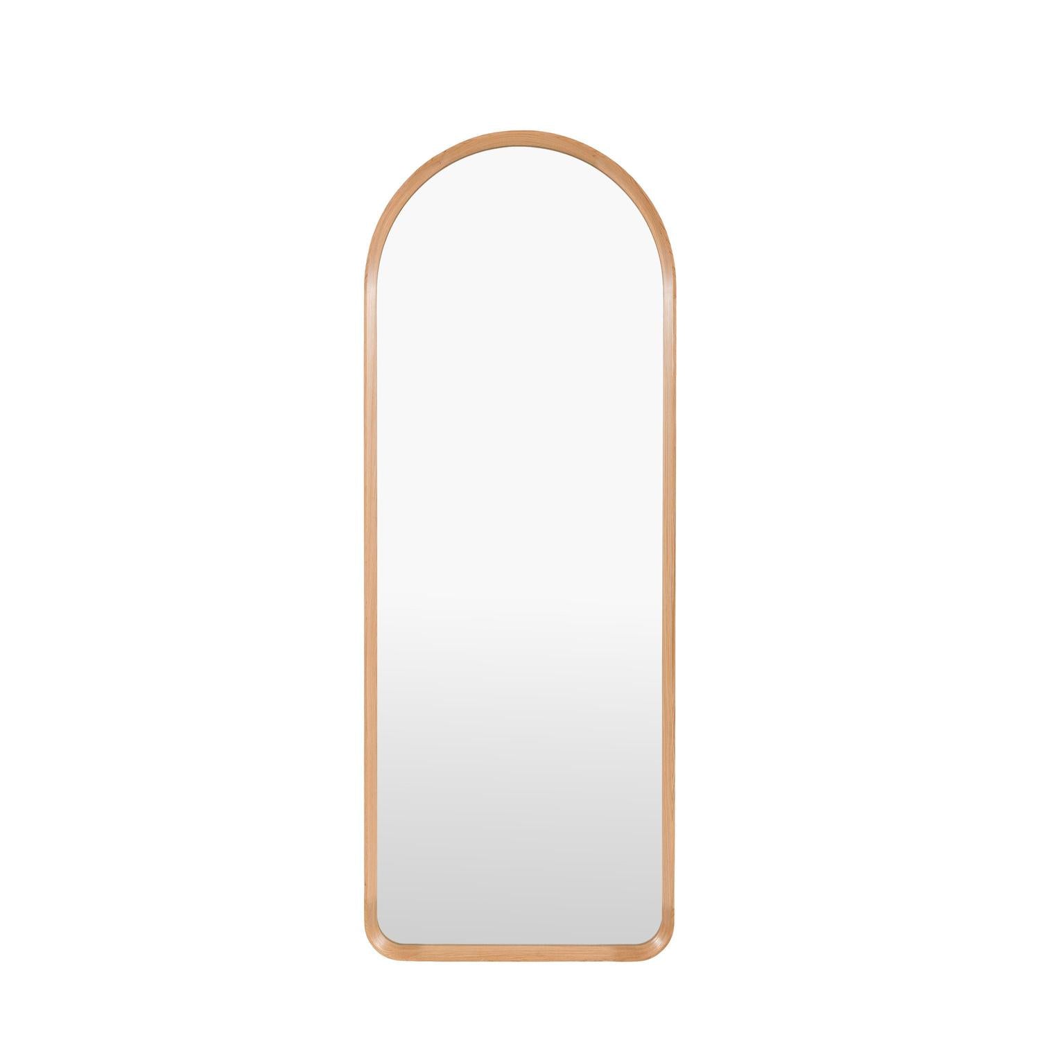 A modern Scandinavian influenced leaner mirror, featuring clean lines, a softly curved shape and a fresh modern feel. Designed to bring light, balance and understated elegance to a modern interior. Simple yet refined, the mirror's solid oak frame has a polished finish, enhancing the natural grain while creating a light contemporary feel.
