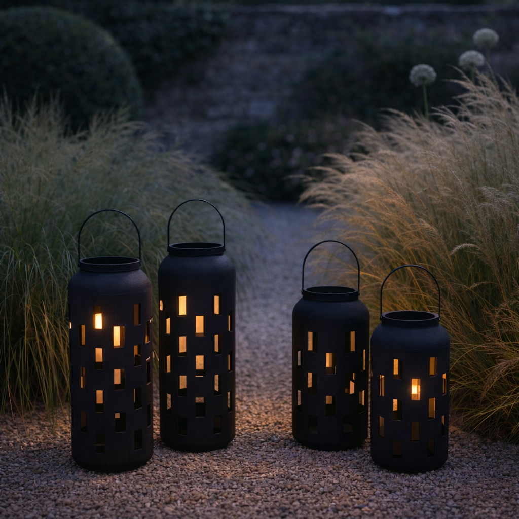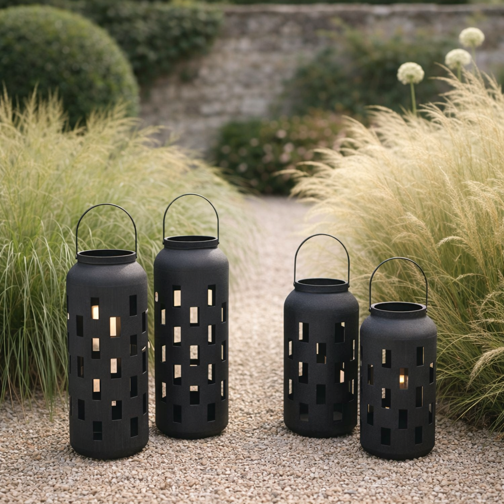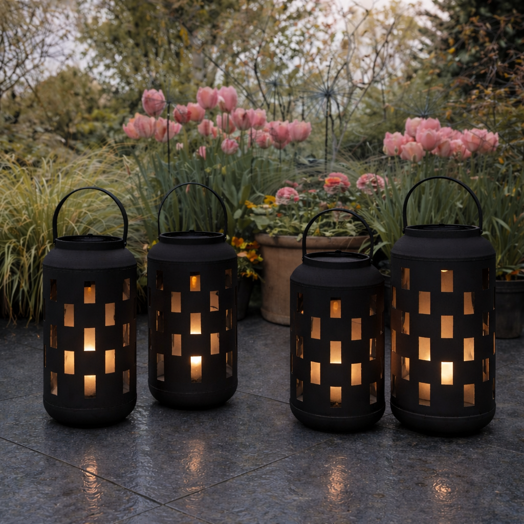 x4 Oliva Solar Lanterns Black