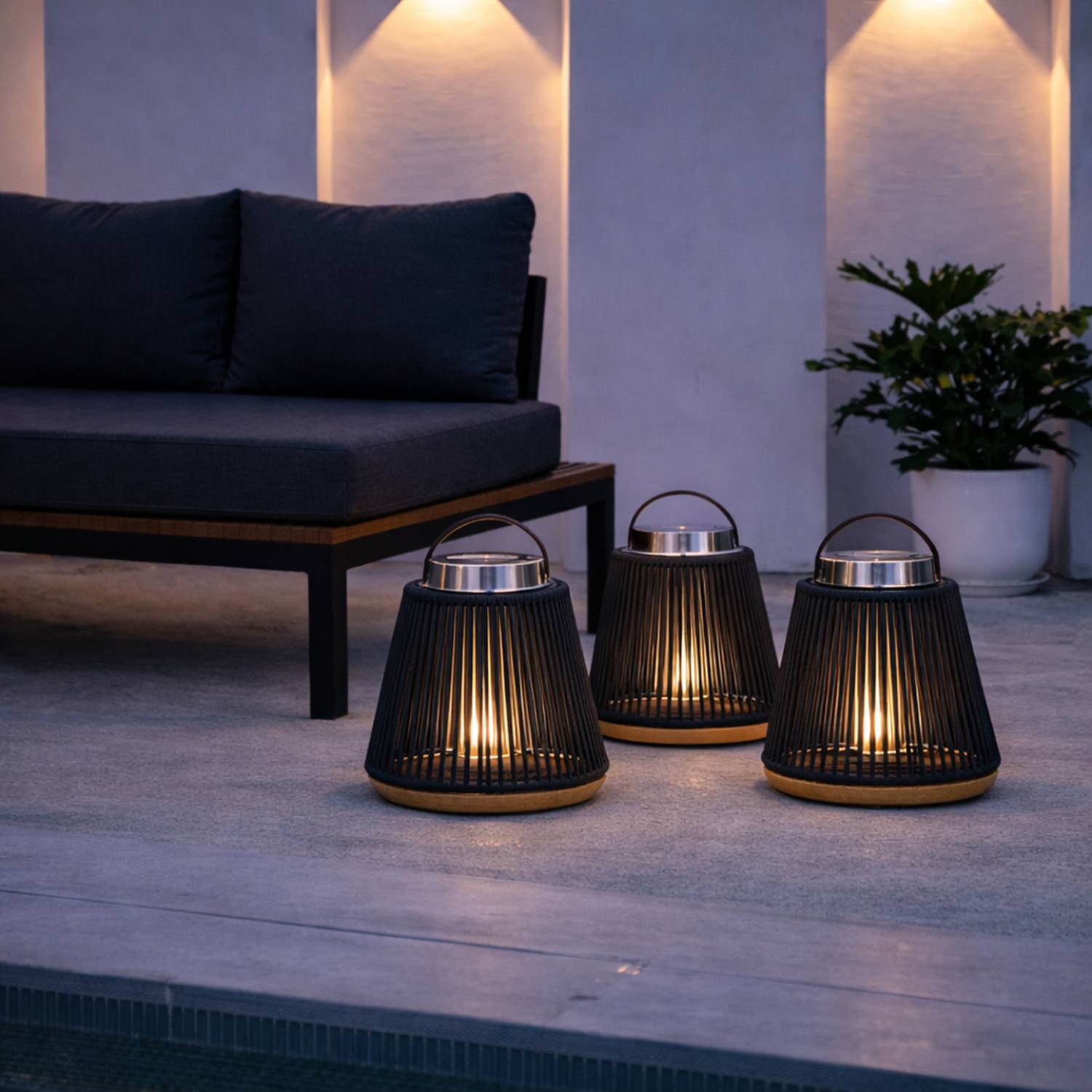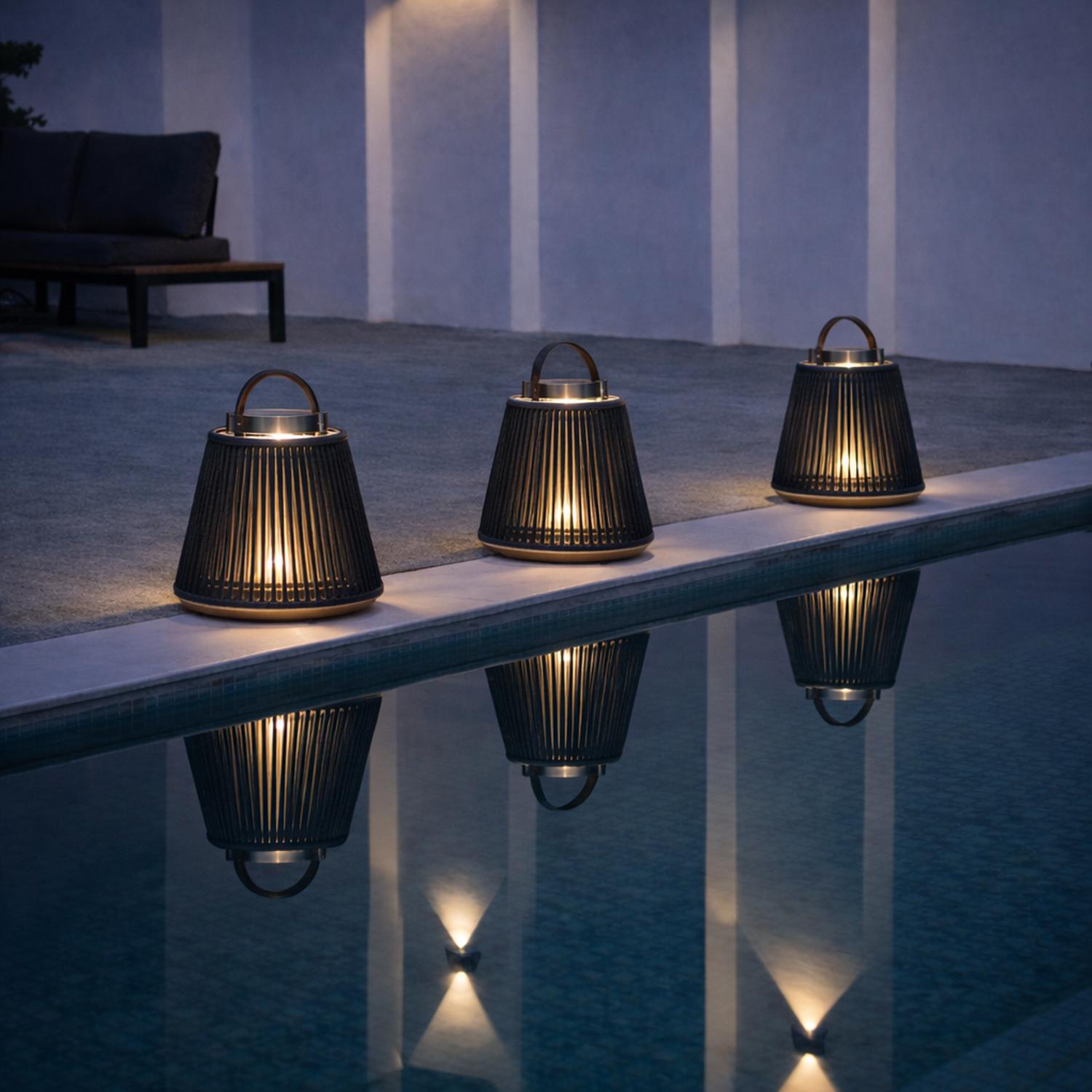 Available in understated grey or charcoal, Athena layers effortlessly into modern terraces, poolside settings, or evening garden gatherings. Dual charging — solar for everyday ease, USB for darker months — means the light is always ready when you are. A discreet Type-C USB cable is included for flexible charging whenever needed.