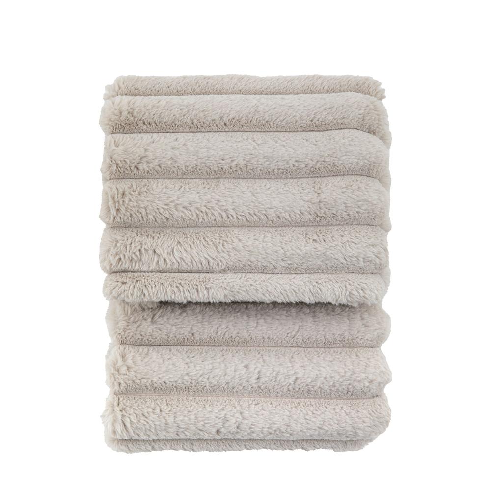 This rich, chunky ribbed faux fur throw introduces a sense of warmth and indulgence through its bold texture and substantial feel. Its layered surface highlights a contemporary appreciation for tactile comfort, adding depth and softness to the interior environment.